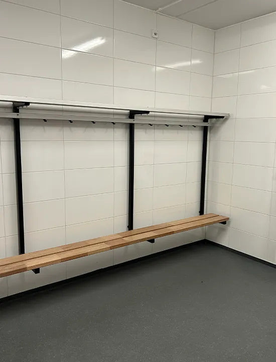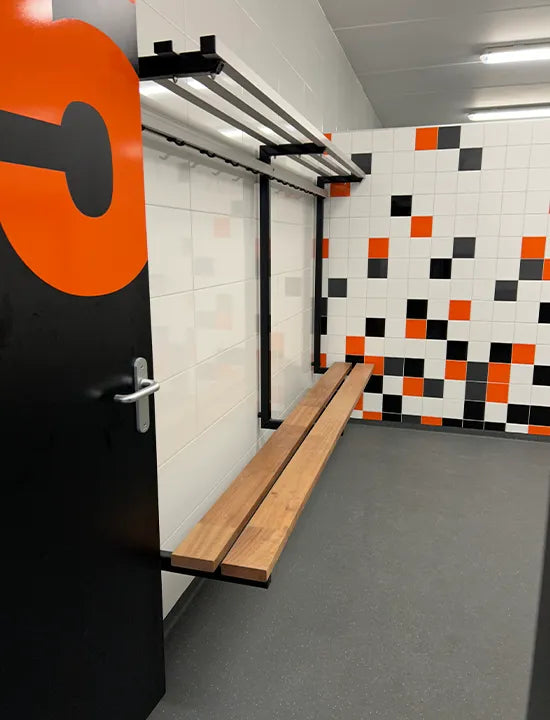 SKOR leverde en installeerde de kleedkamercombinatie C2, bestaande uit meranti houten banken, jashaken en tassenplanken. Het meranti hout zorgt voor een warme, natuurlijke look en sluit perfect aan bij de identiteit van de club. Tegelijkertijd is deze houtsoort duurzaam, onderhoudsvriendelijk en bestand tegen dagelijks gebruik.