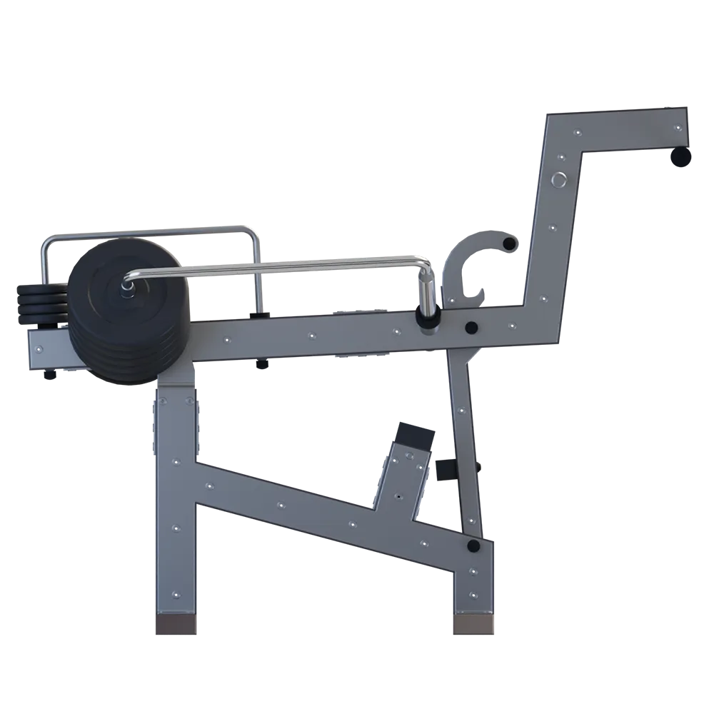 - Belasting eenvoudig verstelbaar doordat de gewichtsplaten langs de rail kunnen worden verschoven.