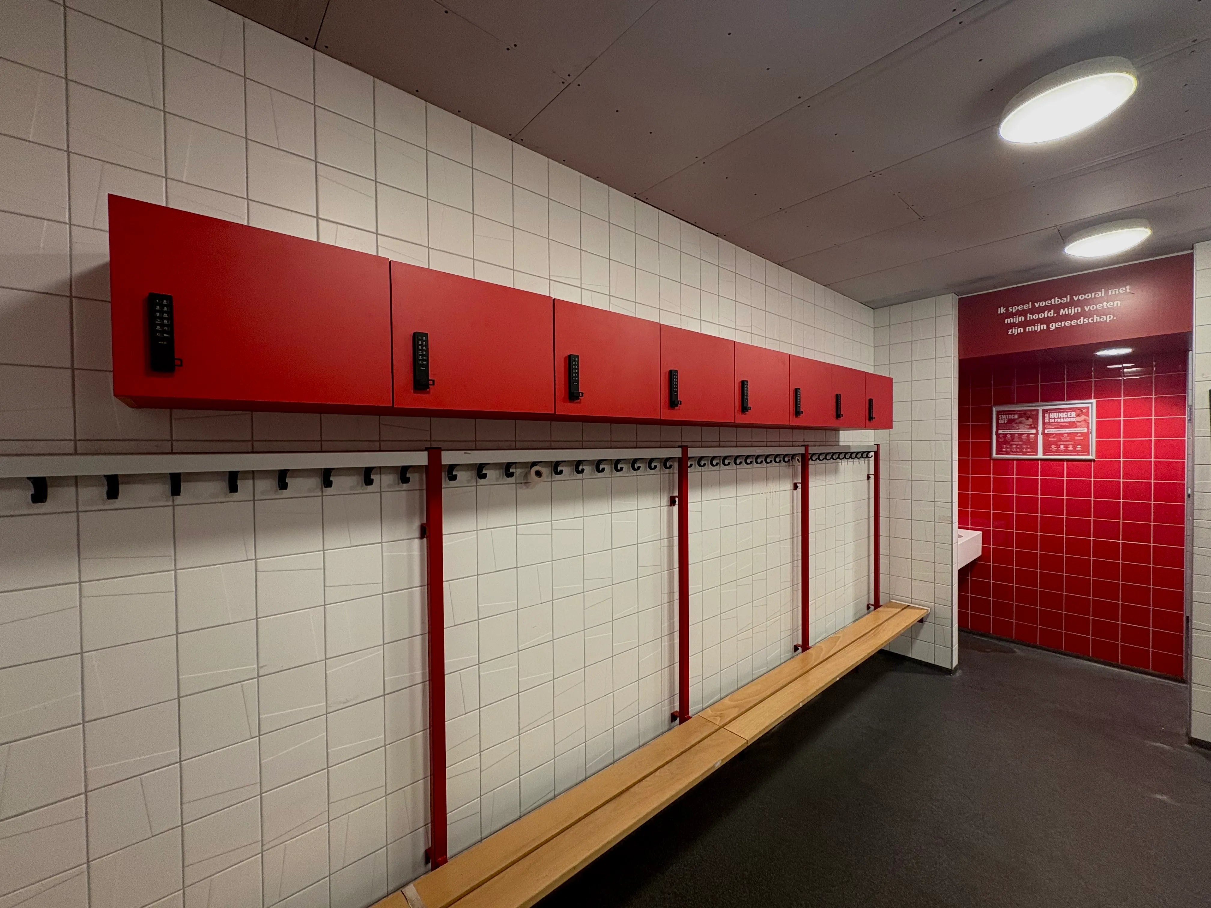 Een kleedkamer is meer dan een functionele ruimte. Het is een plek waar de identiteit van de club zichtbaar mag zijn. Bij SKOR kies je zelf de afwerking, zoals stoelen in clubkleuren, gepersonaliseerde sponsorbedrukking en diverse materialen. Zo wordt de kleedkamer het visitekaartje van jouw vereniging.