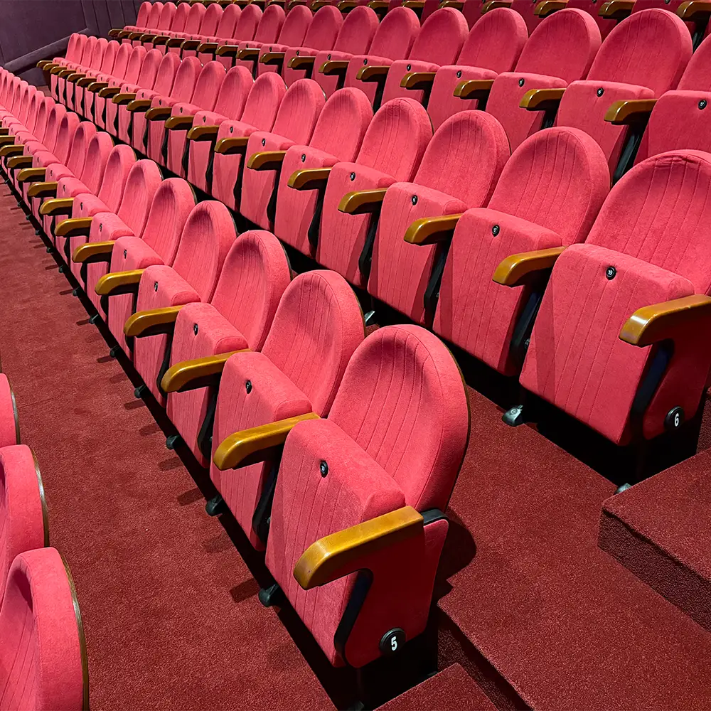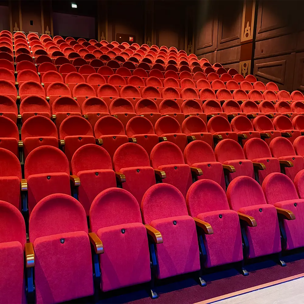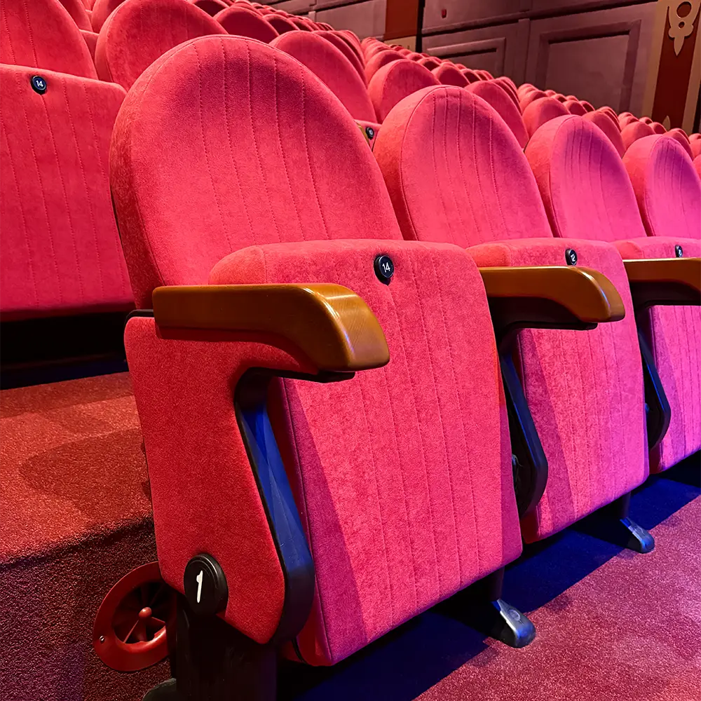 De Mozart biedt een harmonieuze combinatie van klassiek design en moderne functionaliteit. De rugleuning en zitting zijn bekleed met hoogwaardige stoffen en volledig omsloten in het UNIBLOCK-systeem. De fraaie houten afwerking en armleuningen van massief hout geven deze theaterstoel een exclusieve uitstraling, terwijl de automatische opklapzitting en verborgen vloerbevestiging bijdragen aan gebruiksgemak en duurzaamheid.
